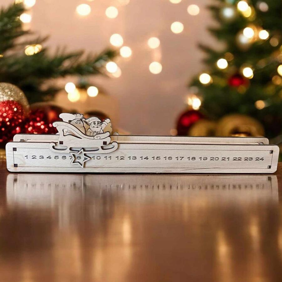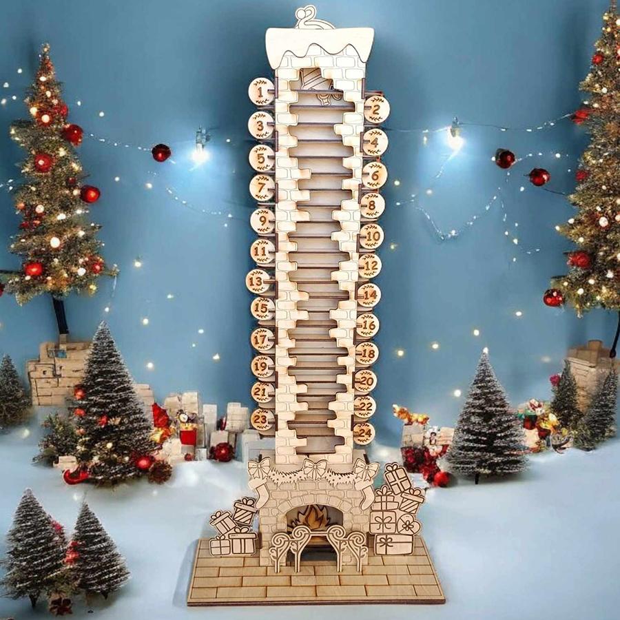 A 61 x 29 x 12 cm-es, nyírfa anyagból készült kéményes Mikulás visszaszámláló egy igazi műalkotás. Az adventi napok során a Mikulás fokozatosan lecsúszik a kéményen, míg végül, amikor elérjük a 24-es számot, beleesik a kandallóba. A naptár részletgazdag karácsonyi mintákkal van díszítve, mint ajándékdobozok, mikuláscsizmák és a Mikulás maga. Ez a visszaszámláló nemcsak szórakoztató, hanem igazi ünnepi dekorációként is megállja a helyét a lakásban.